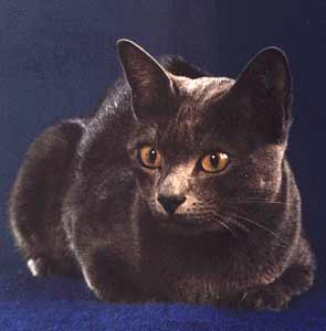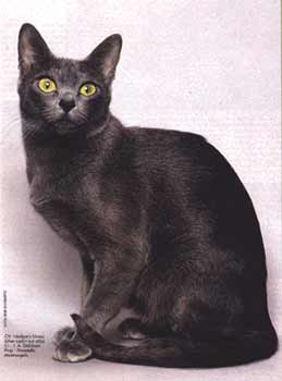 Owner: Elfi Kleive (NO)In the ensuing decades, thanks to the growing awareness of the breed, service people returning from the Vietnam war, and my contacts with Thai breeders, many more imports followed and it can be estimated that at least fifty of them have invigorated our bloodlines to date. I have personally imported thirteen Korats. Our imports come in with more paperwork to prove their country of origin than is required for human travelers. If a cat cannot show origin in Thailand, it is not a Korat. Nowadays, they are recognised by the Thai government as a national treasure and their importation is far more restricted and difficult, but not impossible. Our most recent arrival is a handsome male from the Chiangmai cattery of Professor and Mrs. Mali Rose. His owner here, Nancy Wanwong, had to overcome many obstacles and pull strings to get "Chiangmai Chup" released and home to Florida. Chup now resides in the home of Dr. Thomas J. and Mrs. Marn Pirkle, in Florida. While one would imagine the imports would be besieged for stud service and integration with local lines, sadly, this has not been shown to be so in Korat circles here and in cat fancies of other foreign lands where they are now to be found. Fanciers tend to go for more immediate trends in show judging or opt for geographically closer unions. Fortunately for the future of the Korat in its adoptive countries, there are breeders who have proved to be the exception. Therein lies the eventual preservation of the breed's vigour.