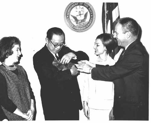 Congressman Duncan, meanwhile, had made arrangements for a presentation ceremony in his office. Shortly before the hour, movie cameramen, radio technicians and reporters moved in.